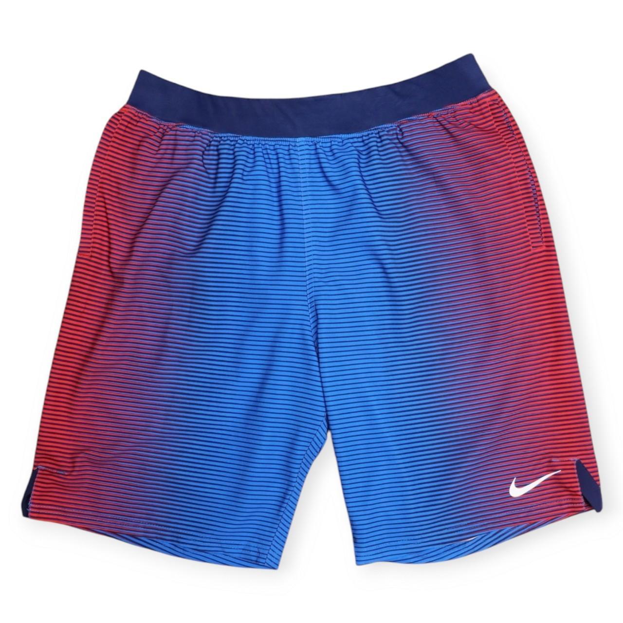 Men's, ombre Nike shorts. Blue to red multi-hue design. Printed, Nike tick found on short leg. Pockets either side. Additional pocket located on rear. Perfect for indoor/ outdoor sportswear. Great for everyday, casual wear, during summer seasons. Perfect for gym wear.