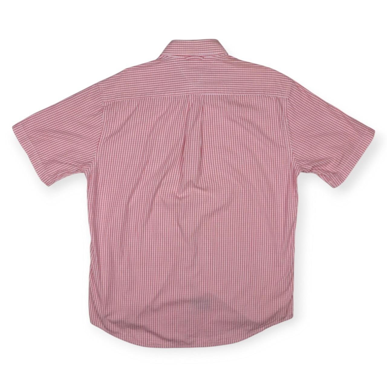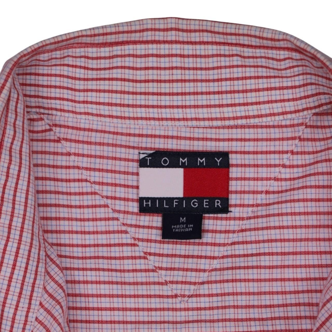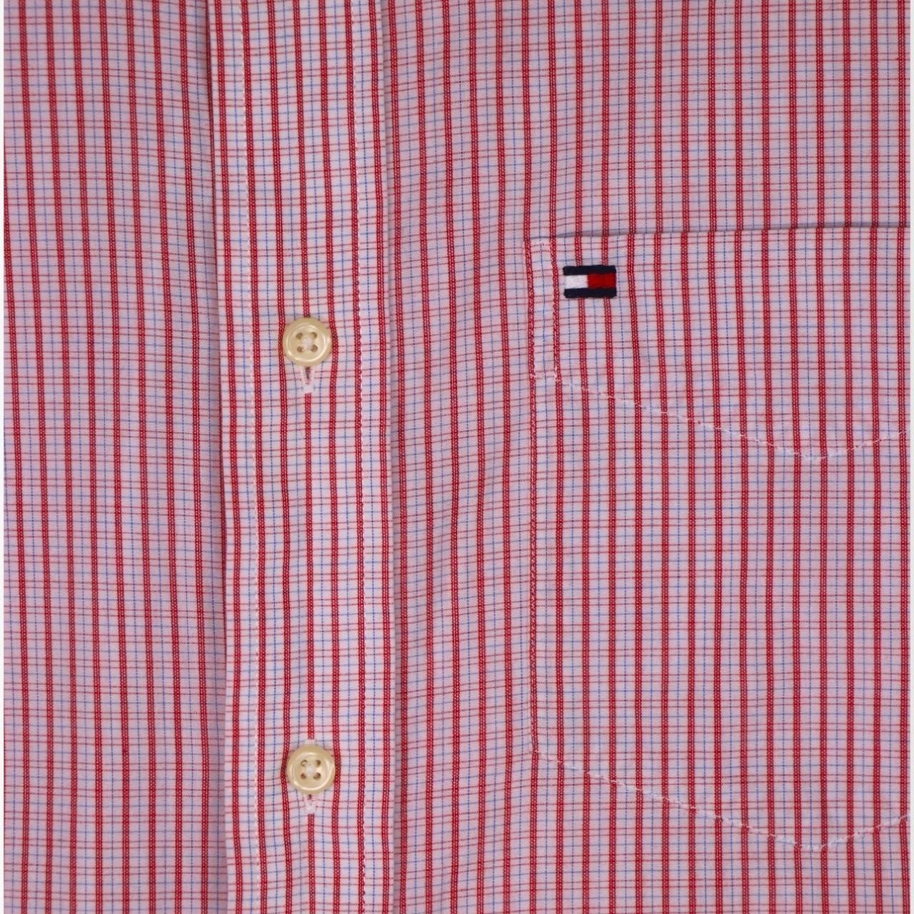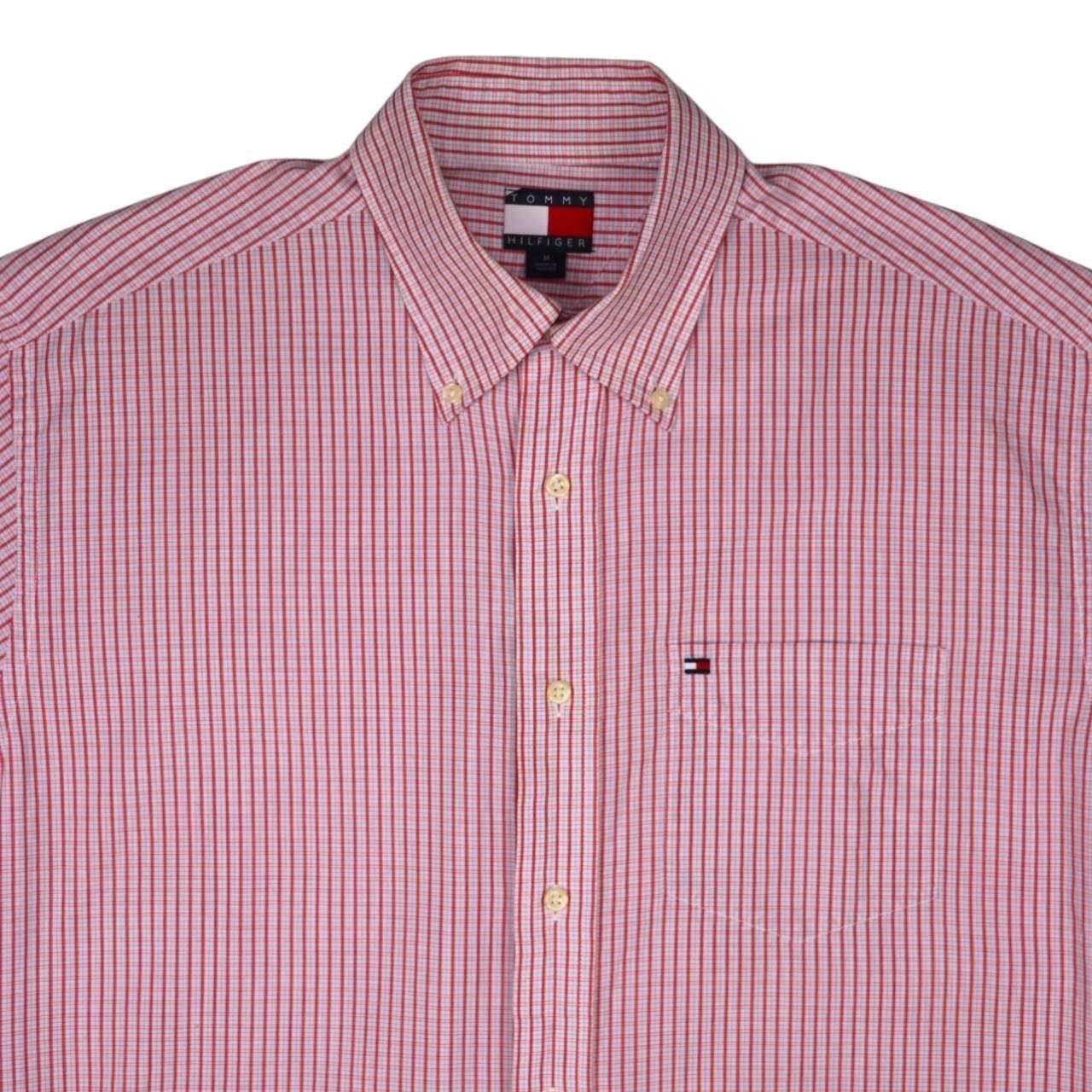 Classic, pink and white, Tommy Hilfiger, short sleeved shirt. Small embroidered, Tommy Hilfiger logo found, left hand side, on pocket. Pocket found, left hand side of main placket. Checker striped design. Beige buttons. Sophisticated, preppy shirt. Ideal for wear during all types of seasons. Regular fit. Perfect for any formal/ semi- formal occasion. Great for gifting. Luxurious piece.